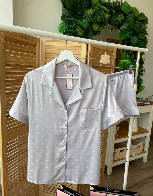 Пижама Виктория Сикрет с рисунком сердечки. Пижама Виктория Сикрет состоит из рубашки и шорт. На рубашке небольшой карман с декором стразы. Пижама Виктория Сикрет порадует каждую девушку в любой день. Пижама Виктория Сикрет отличный подарок на любой праздник: день рождения, 8 марта, новый год.