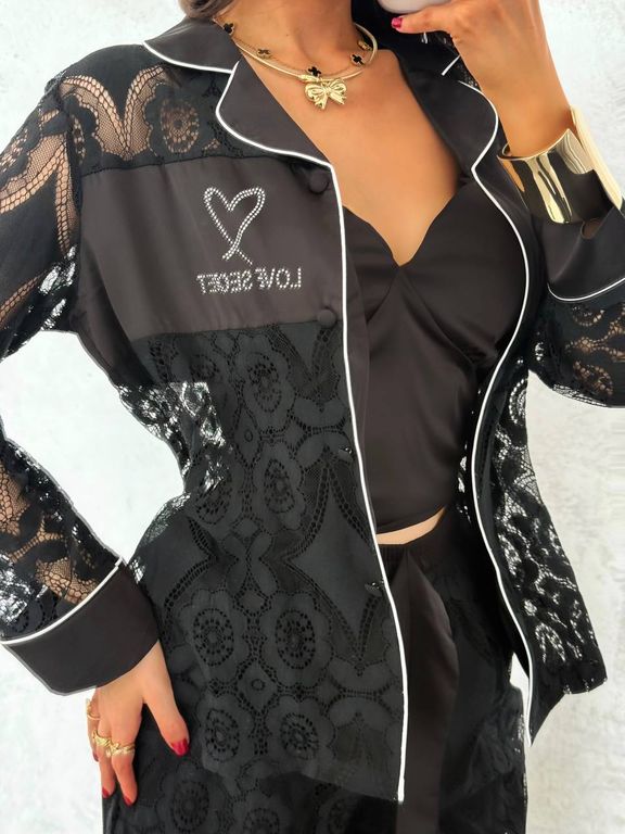 Рубашка и майка декорированы стразами.