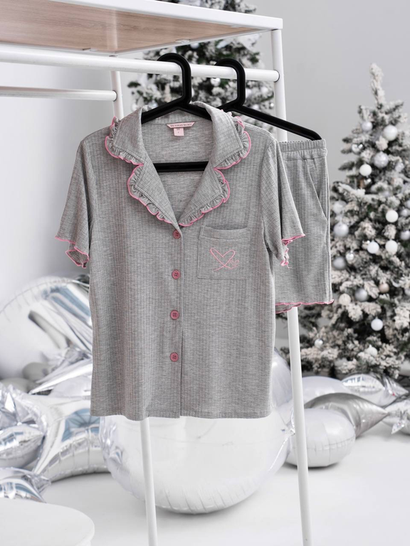 Комплект рубашка и шорты подходят для дома и сна. Рубашка и шорты с розовым кантом, на воротнике рюши.