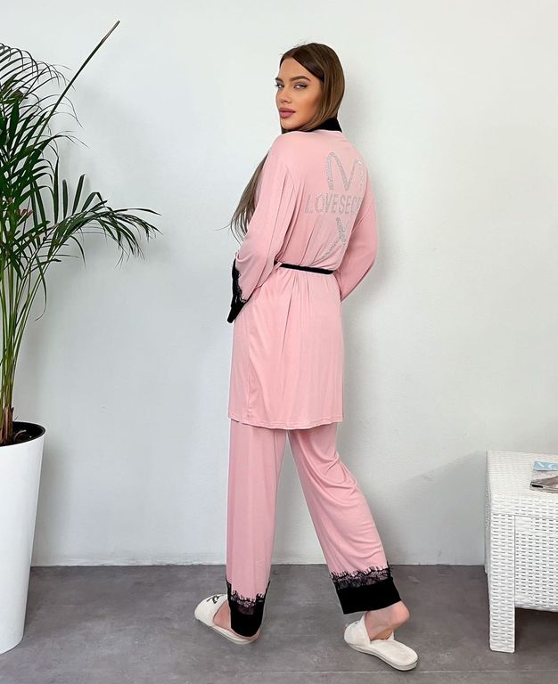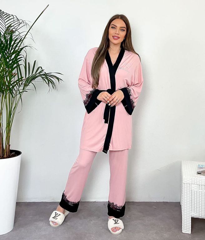 Домашняя одежда декорирована стразами и кружевом