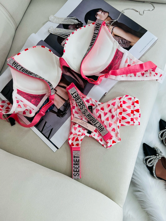 Комплект нижнего белья Виктория Сикрет со стразами и кружевом