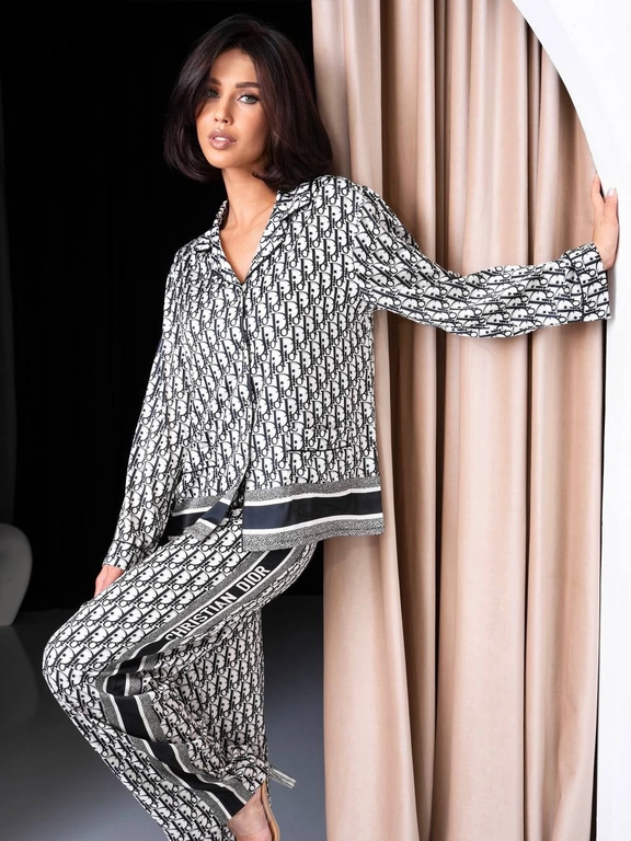 Красивая, уютная пижама в стиле известного бренда состоит из двух предметов: рубашка, брюки.