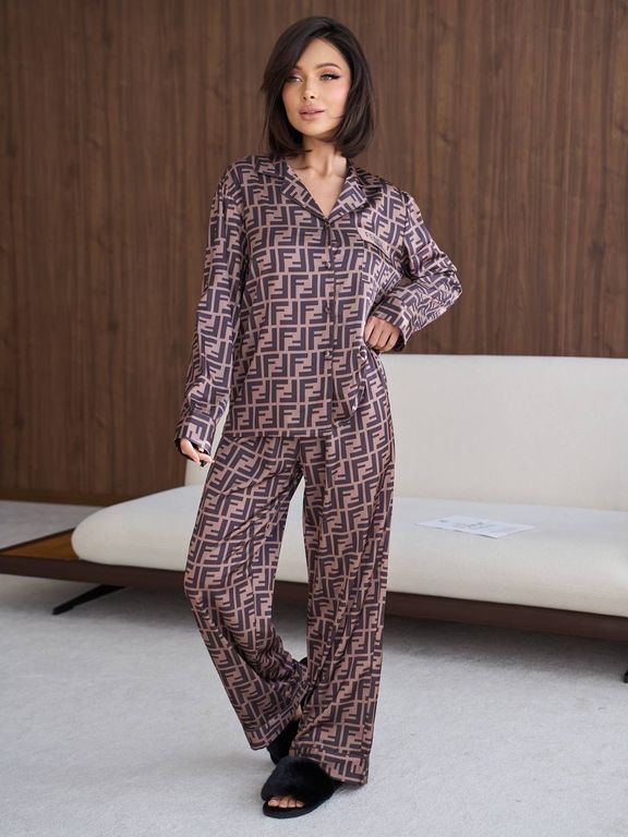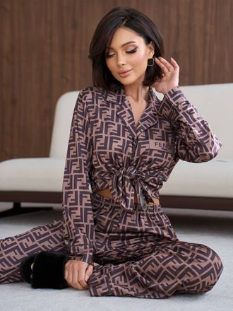 Пижама в стиле известного бренда с логотипом. В комплект входи рубашка и брюки.