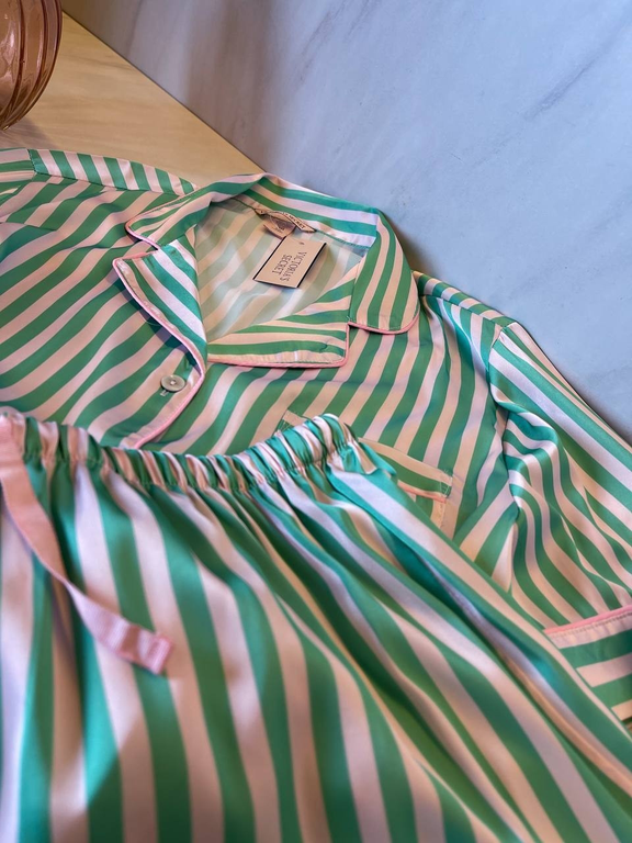 Пижама Виктория Сикрет декорирована розовым кантом.