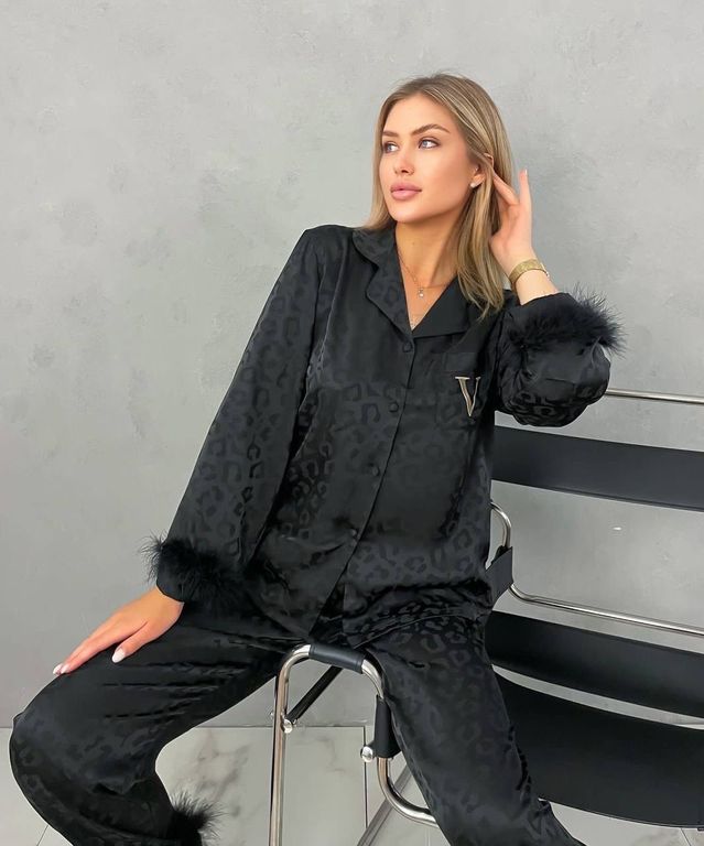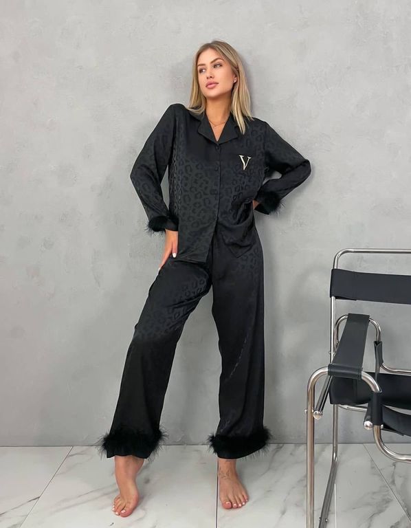 Пижама Виктория Сикрет черная с перьями