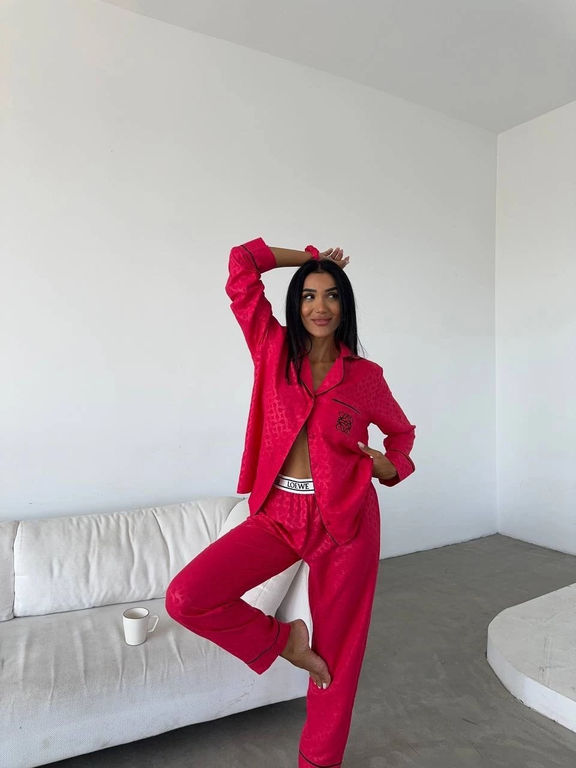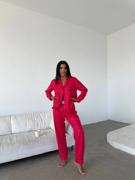 Красивая, уютная пижама в стиле известного бренда состоит из трёх предметов: рубашка, брюки, резинка для волос.