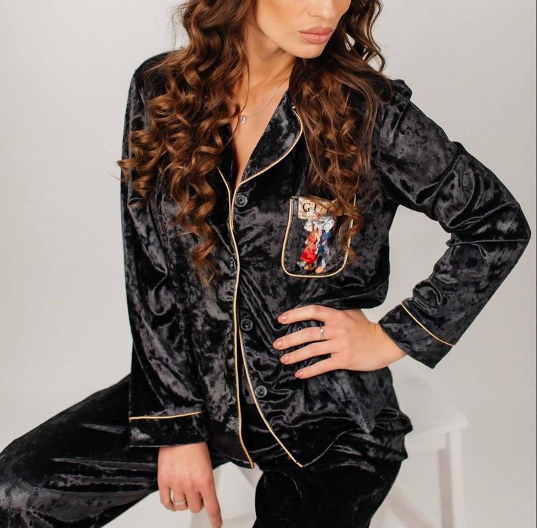 Женская пижама. Пижама из очень мягкого материала-велюр. Крой пижамы свободный.