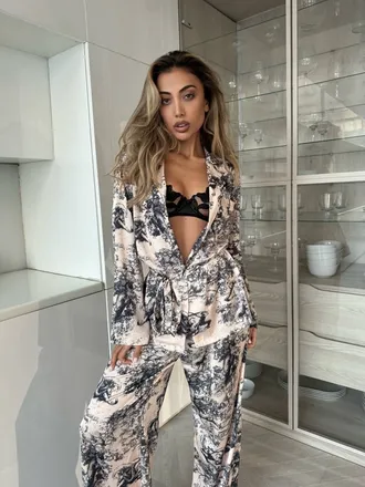 Красивая, уютная пижама в стиле известного бренда состоит из двух предметов: рубашка, брюки